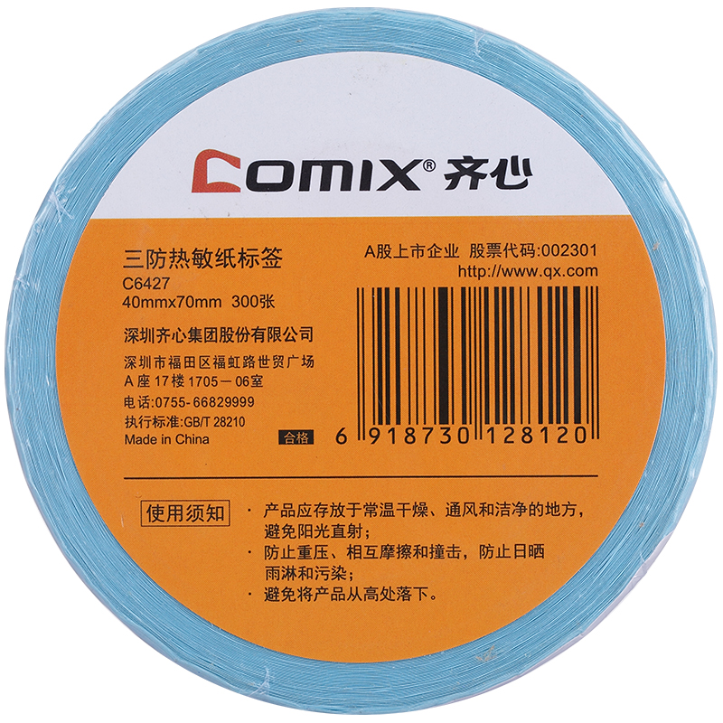 齐心 C6427 三防热敏纸标签 40*70mm 300张