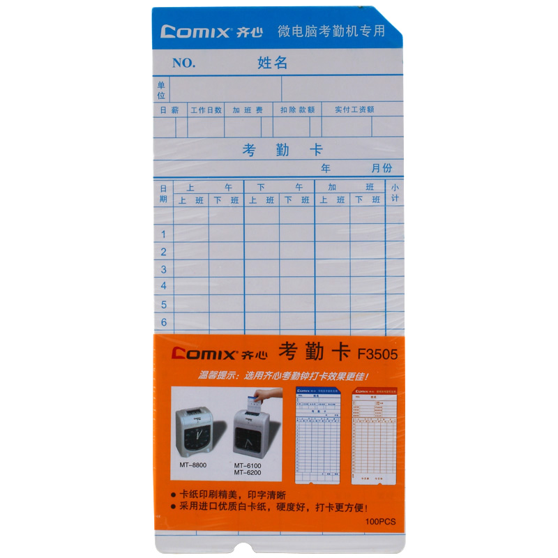 齐心 F3505 双面考勤卡纸 300g白卡/100张/包