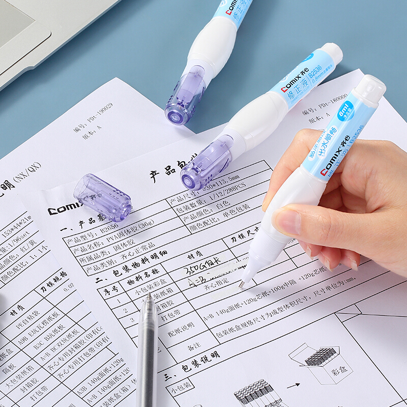 齐心(Comix) 8ml 24支装 快干环保修正液办公学生用品便携无痕改正液 白色 B2536