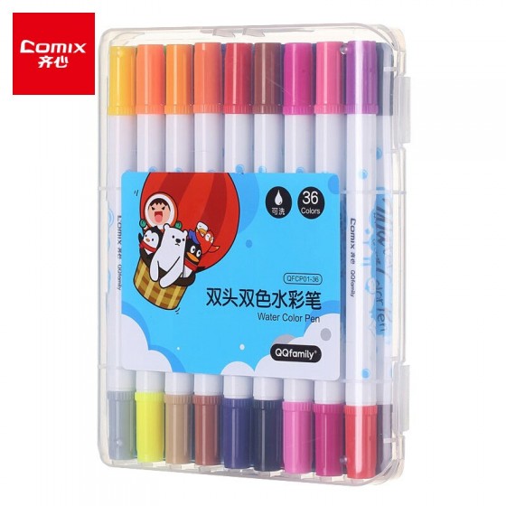 齐心(Comix) 双头双色文具水彩笔可水洗创作画笔水彩绘画笔 18支36色 QFCP01-36