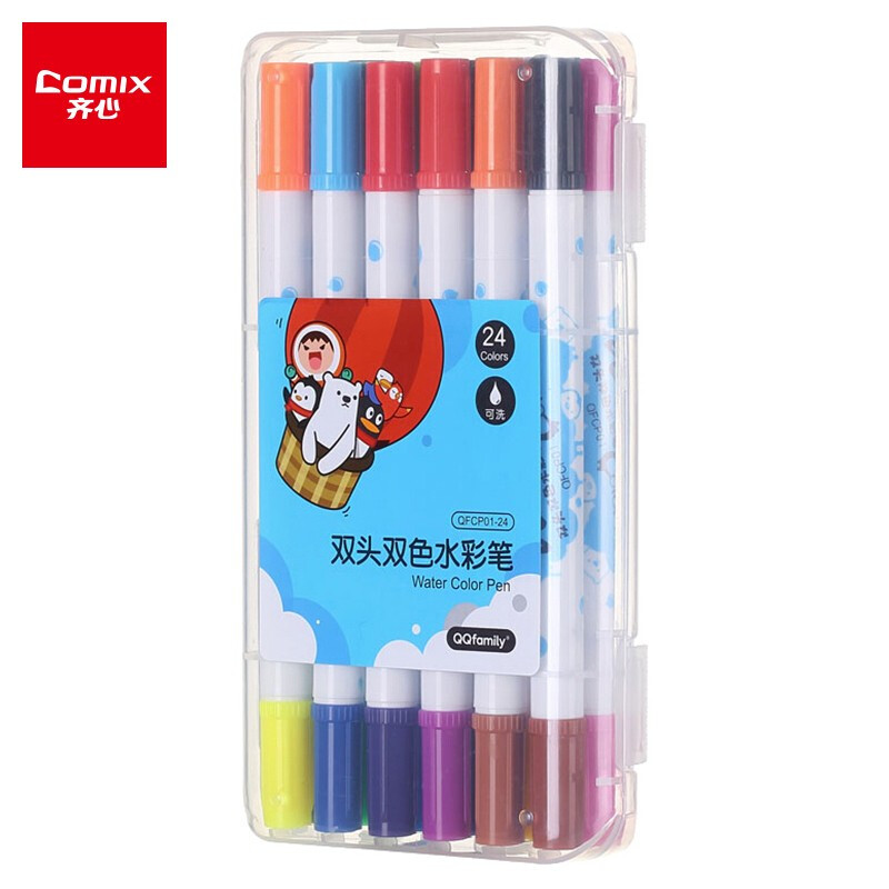 齐心(Comix) 双头双色文具水彩笔可水洗创作画笔水彩绘画笔 12支24色 QFCP01-24