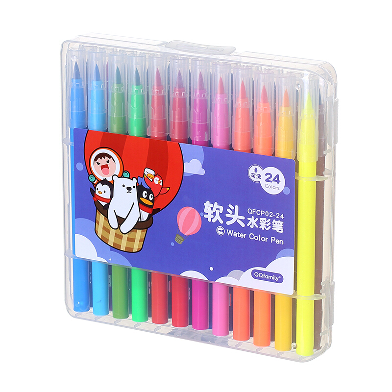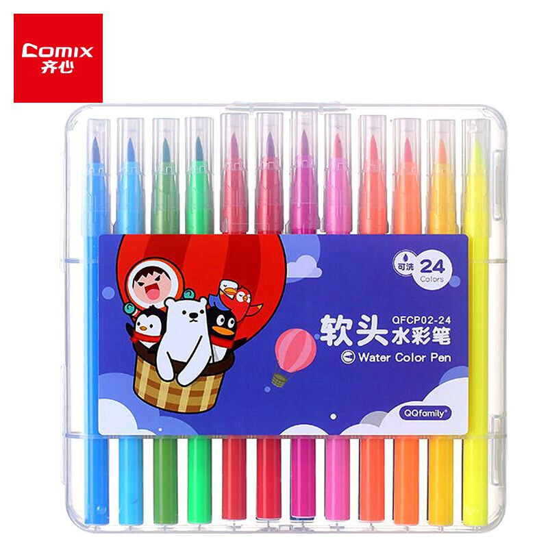 齐心(Comix)QQFamliy 文具水彩笔软头可水洗水彩笔绘画勾线笔儿童美术课涂鸦笔 24色 QFCP02-24