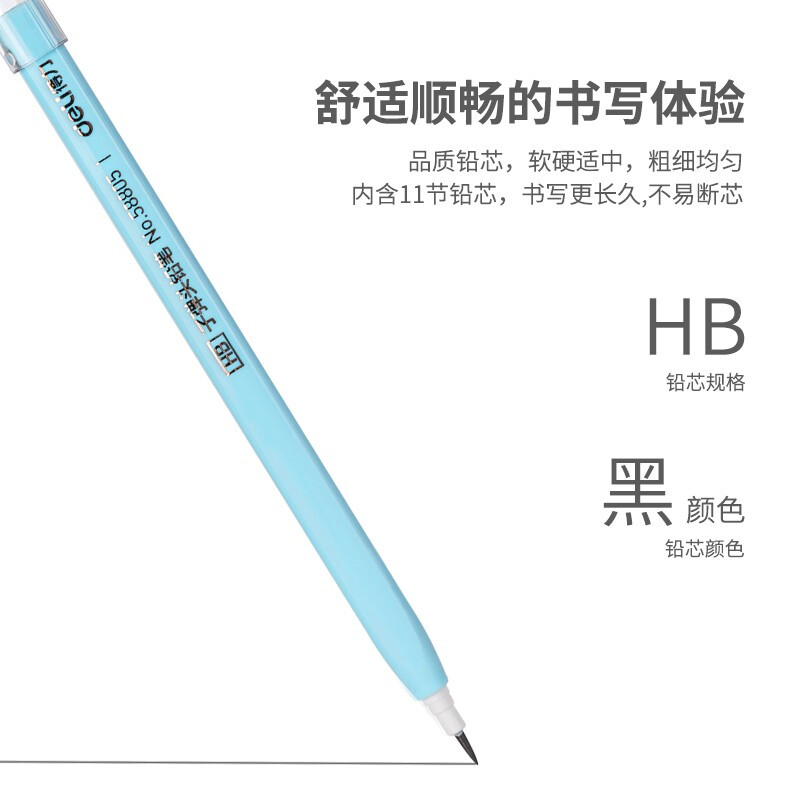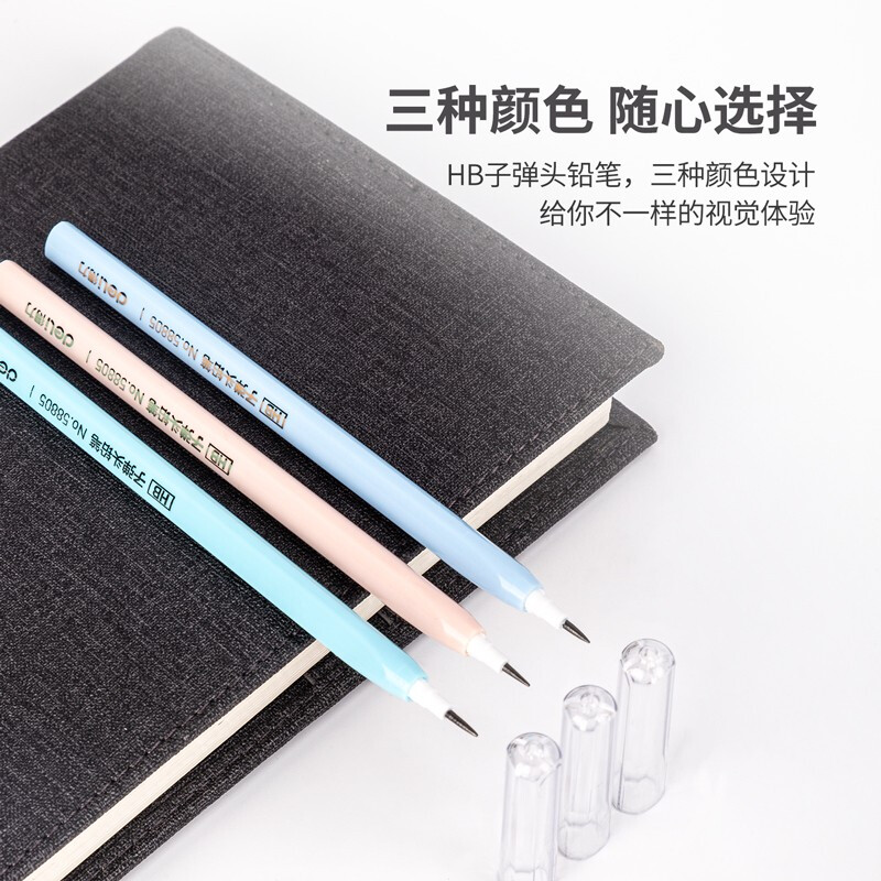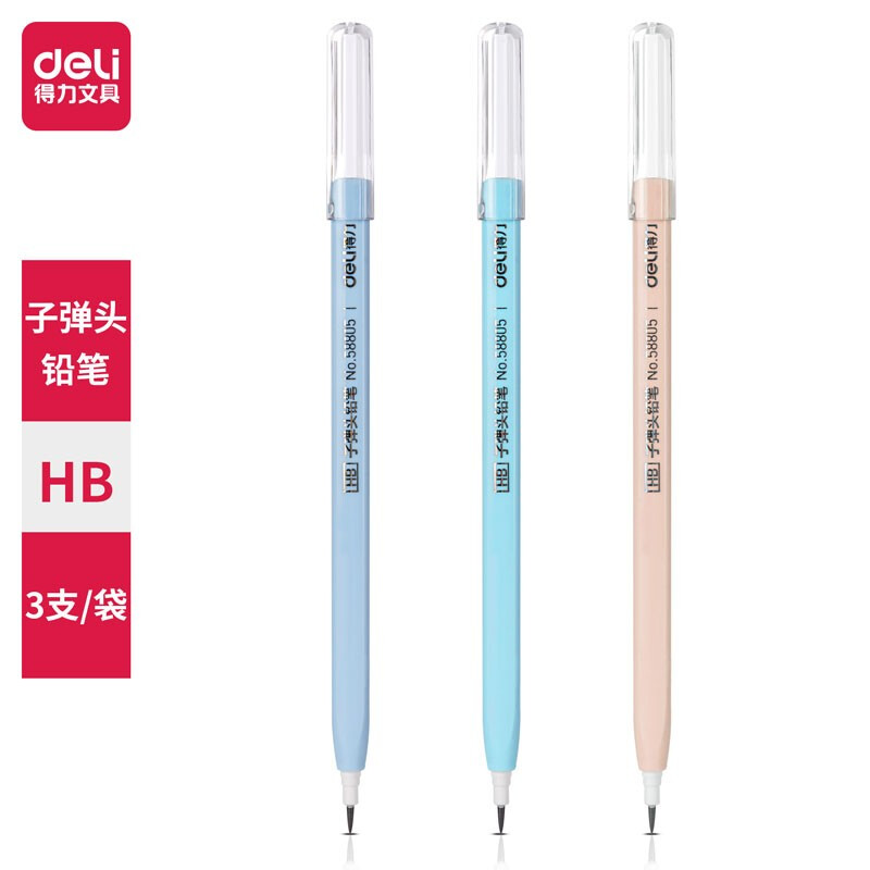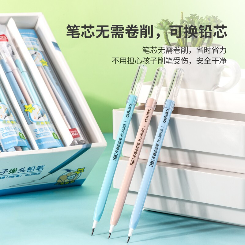 得力(deli)3支HB铅笔 可换芯子弹头免削铅笔 书写绘图铅笔 每支11节共33节替芯 58805