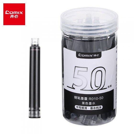齐心(Comix)钢笔墨囊 换囊式钢笔墨水 墨胆 大包装50支装 黑 R010-50