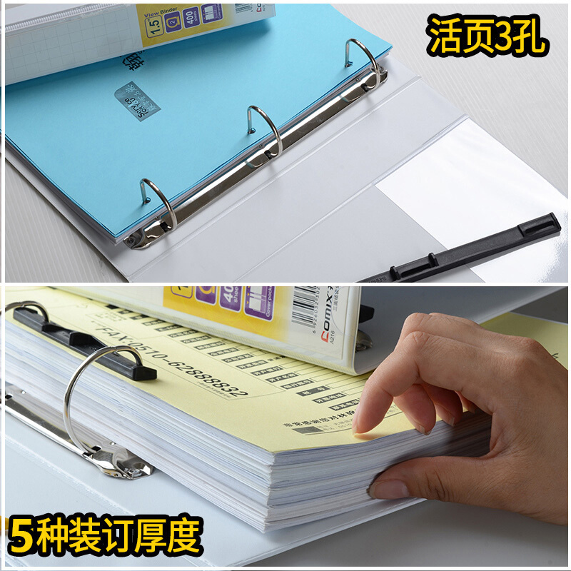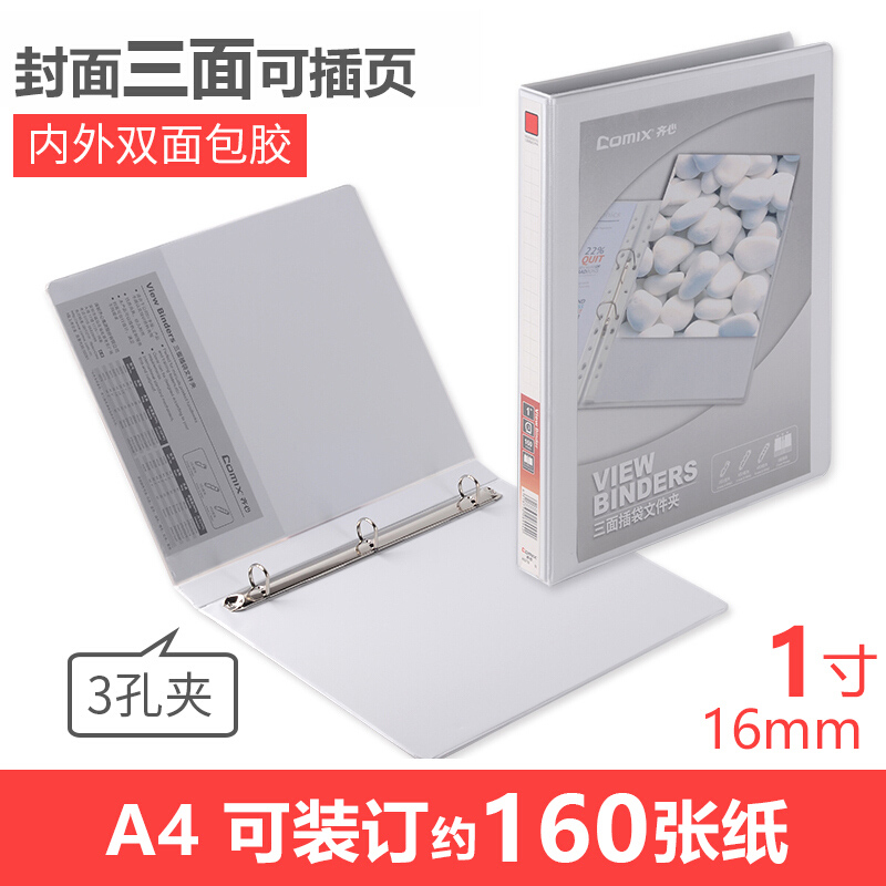 齐心 A0210 易展示 美式三面插袋文件夹 A4 1寸3孔D型夹
