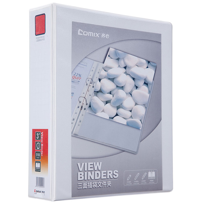 齐心 A0234 易展示 美式三面插袋文件夹 A4 3寸2孔D型夹