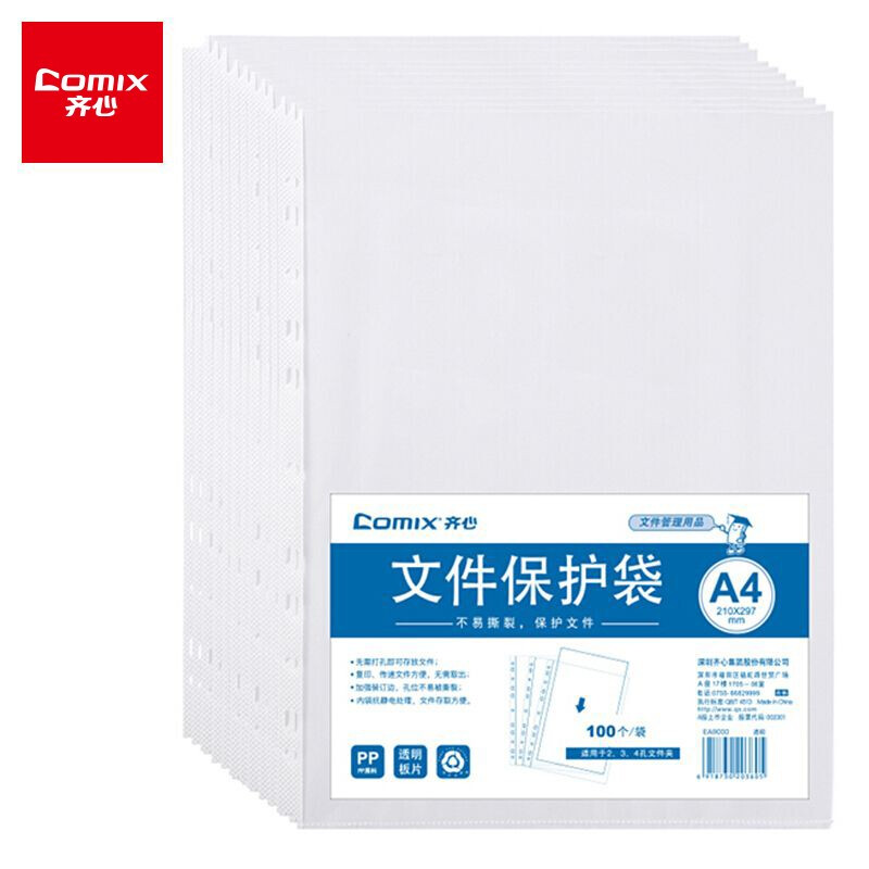 齐心(Comix) 100只 11孔资料册文件袋 替芯袋保护袋 搭配孔夹快劳夹使用EA9000