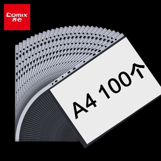 齐心(Comix) 100个装 11孔资料册文件袋 文件套 替芯袋保护袋 白色 EH303A-1 办公用品 搭配孔夹快劳夹使用