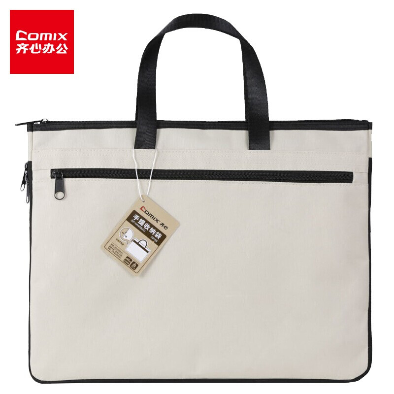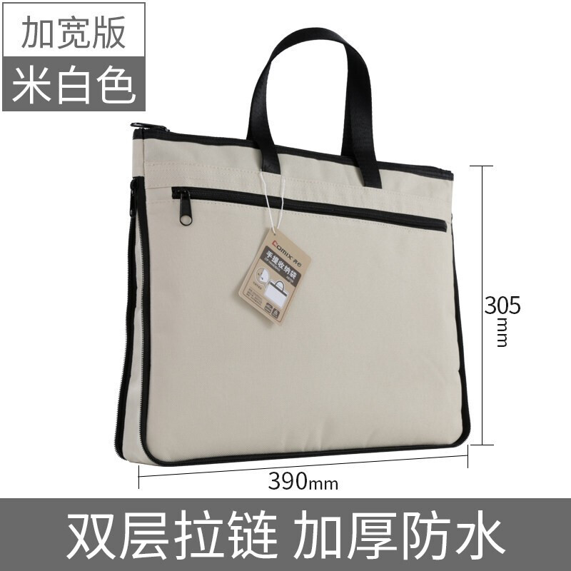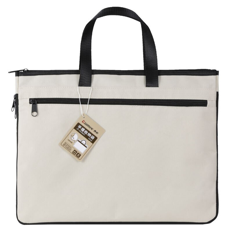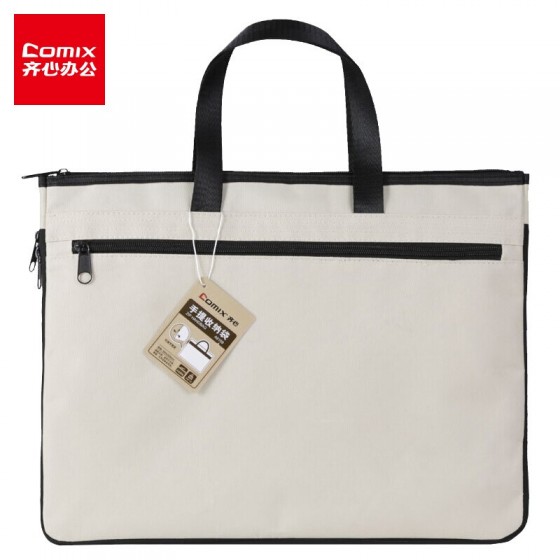 齐心(Comix) 双层事务包/拉链袋公文包/手提电脑包/会议包 可定制企业单位logo A8159米白色
