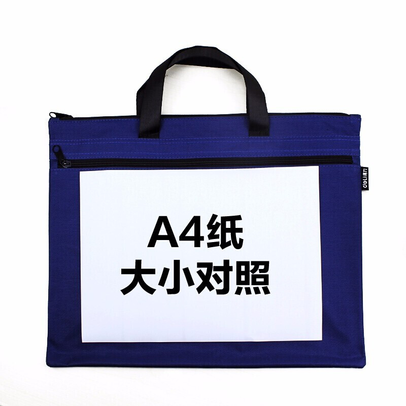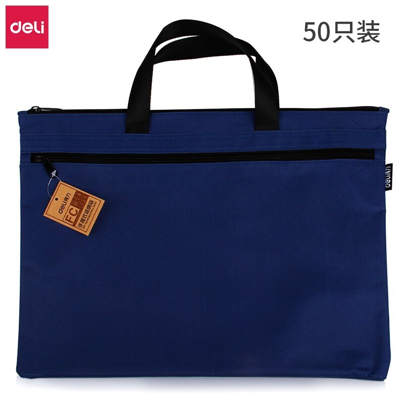 得力(deli)A4帆布手提袋多层大容量文件袋商务公文包公文袋拉链袋 【50只装高性价比】双层商务手提袋 蓝色 5840