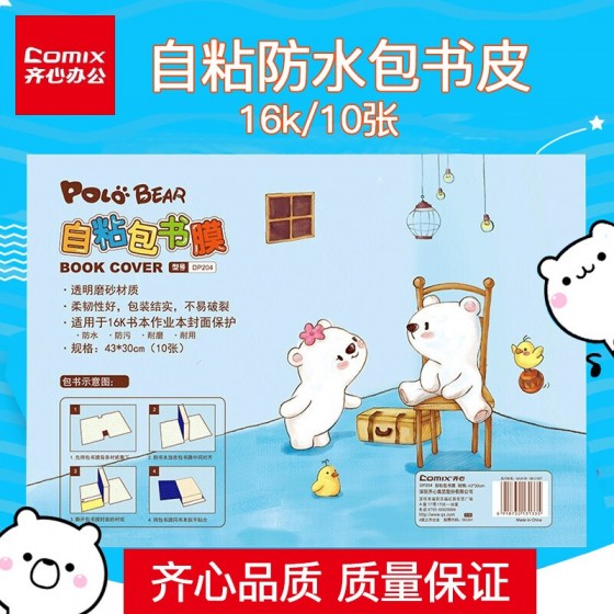齐心(COMIX)10张A4自粘包书皮 透明磨砂包书膜小学生书套 16K