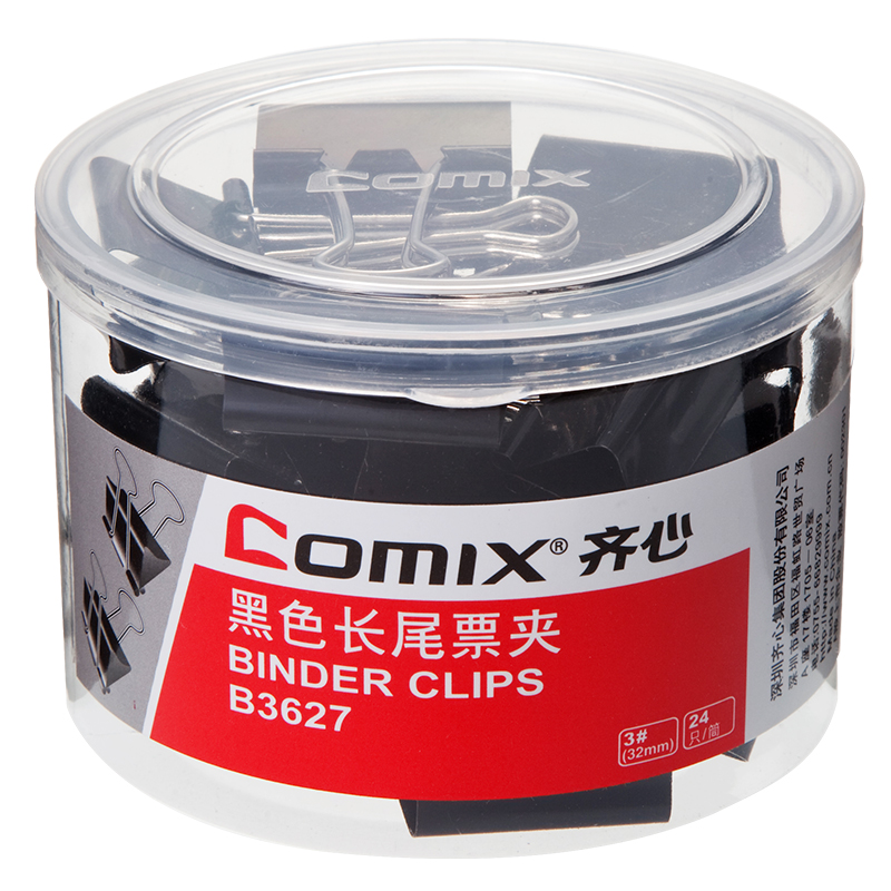 齐心 B3627黑色长尾票夹 3# 32mm 24只/筒