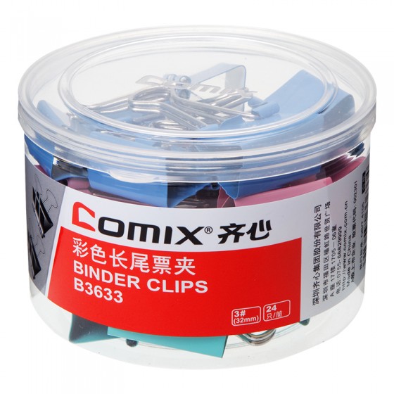 齐心 B3633长尾票夹 3# 32mm 24只/筒
