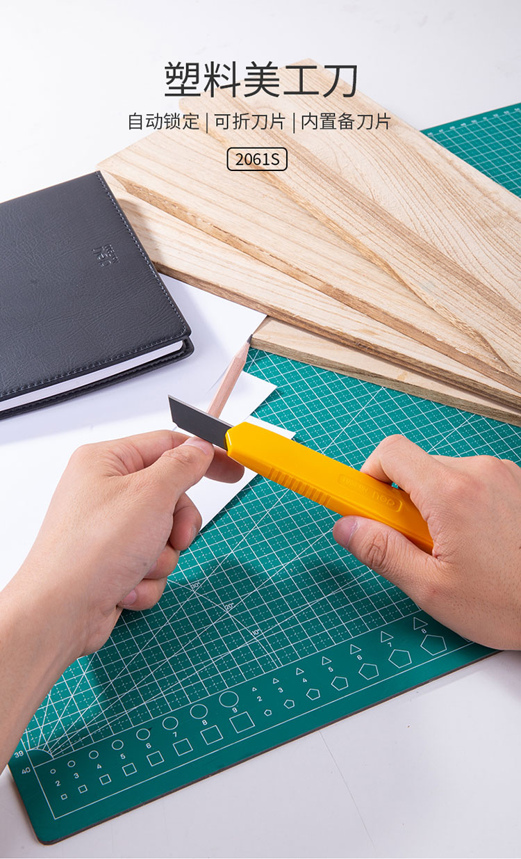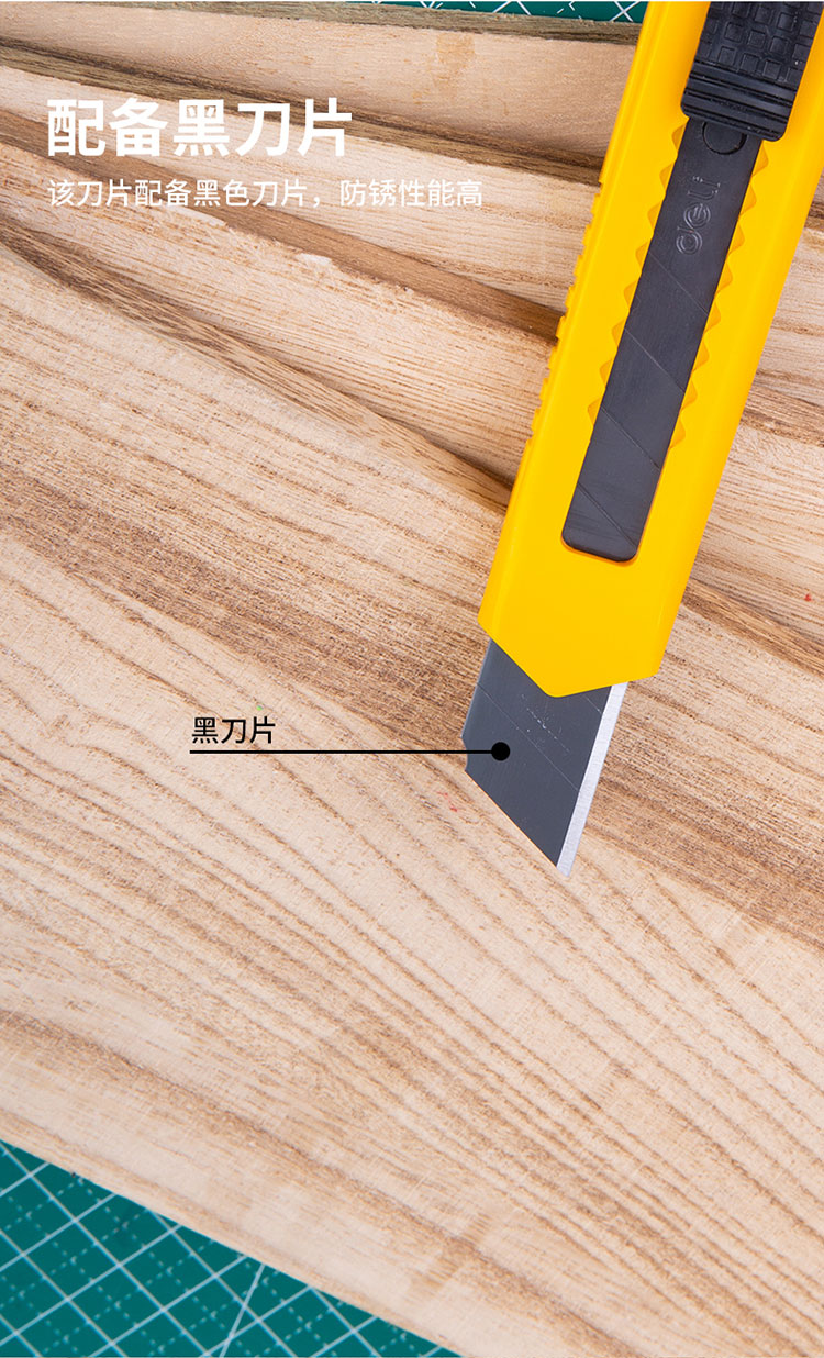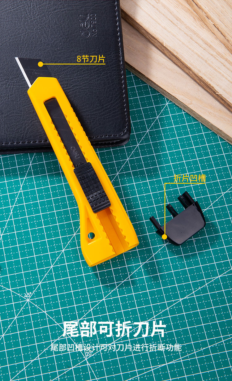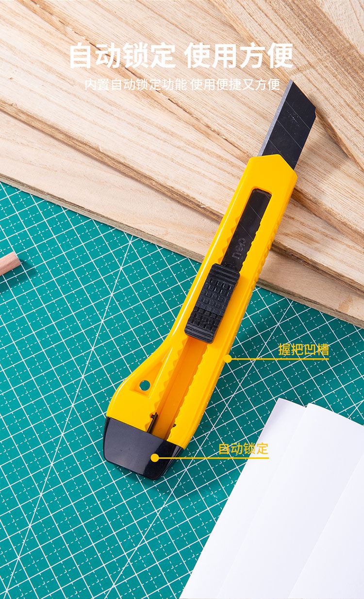 得力(deli)大号黑刃自锁美工刀/裁纸刀/壁纸刀 锋利耐磨 黄色2061S