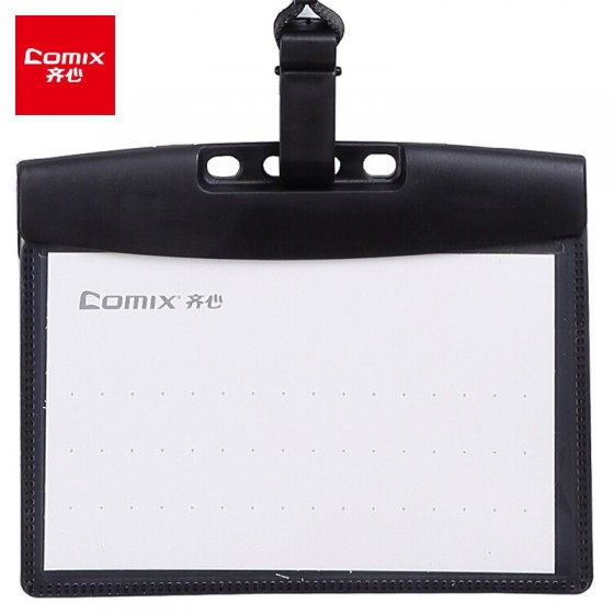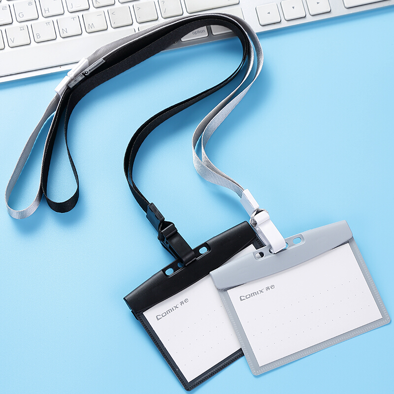 齐心(Comix) 证件卡套装工作证工牌挂绳套装证件卡套员工厂牌公交卡套 办公用品 横式 黑 A7966