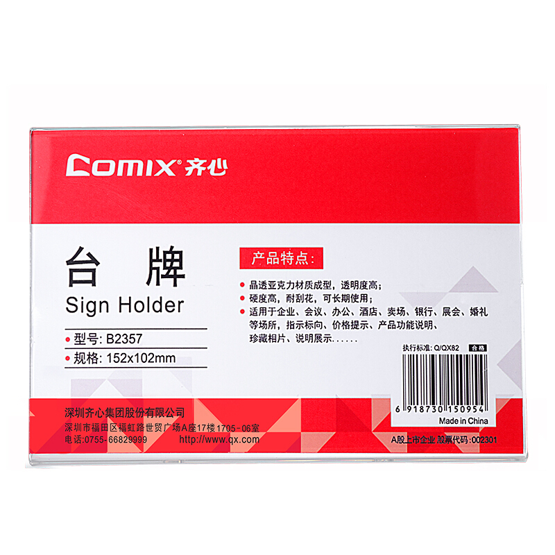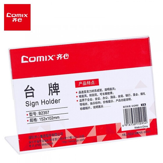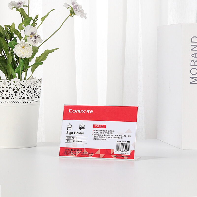 齐心(Comix) 高透明亚克力L型A6横式亚克力单面二维码支付台牌/桌牌架/台卡/展示牌 B2357
