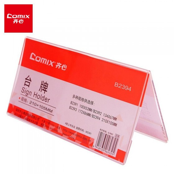 齐心(Comix)桌面展示卡/桌牌 V型亚克力台卡/台牌 高透明210x105mmB2394