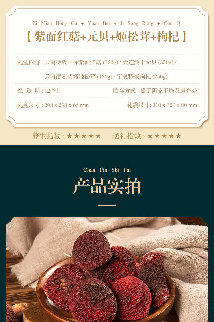 有呈 幸福琉璃系列 紫面红菇+元贝 姬松茸+枸杞 850克 礼盒装