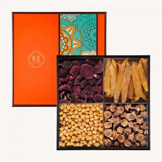 有呈 幸福琉璃系列 紫面红菇+黄花胶 元贝+姬松茸 730克