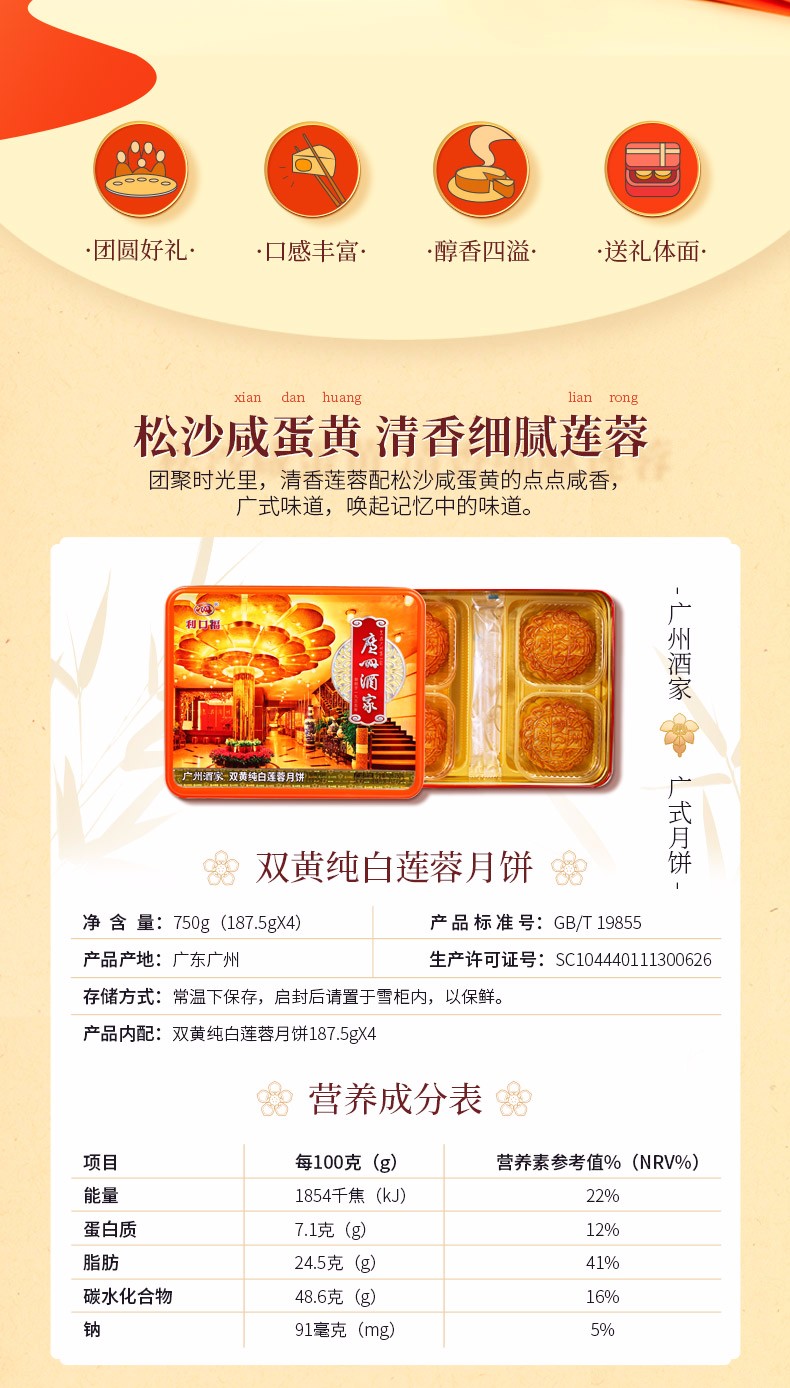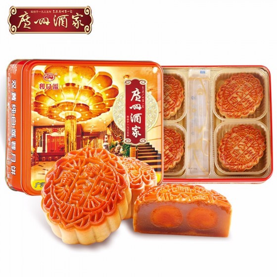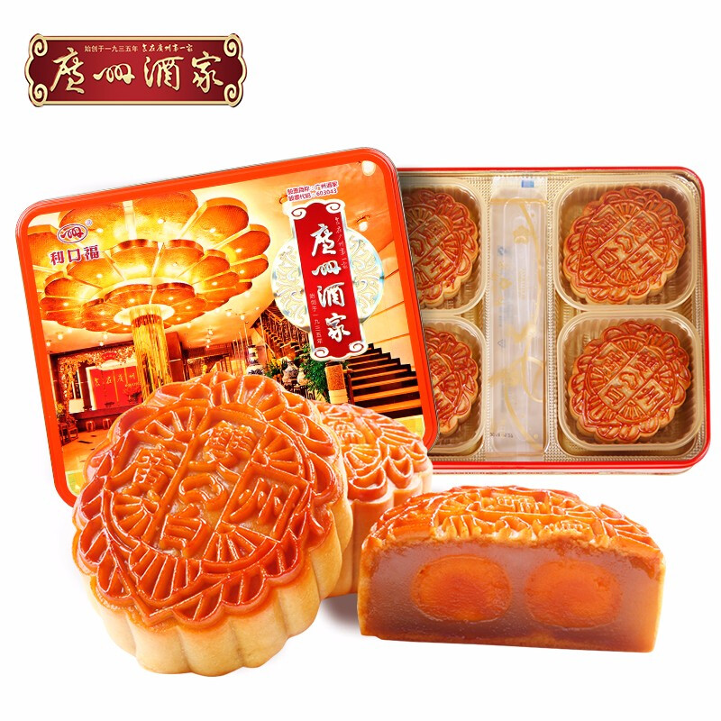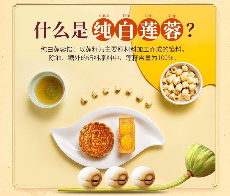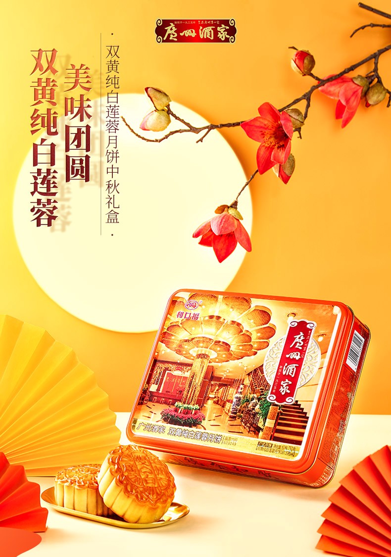 广州酒家月饼双黄纯白莲蓉月饼 广式月饼广东特产750g/盒中秋送礼员工团购福利