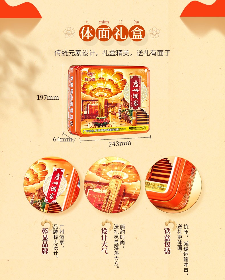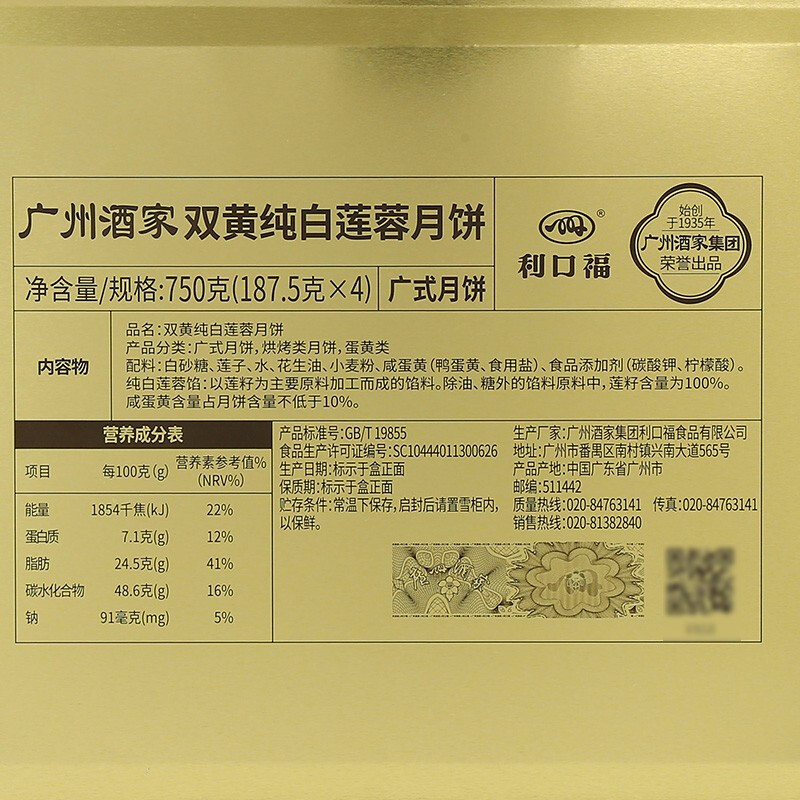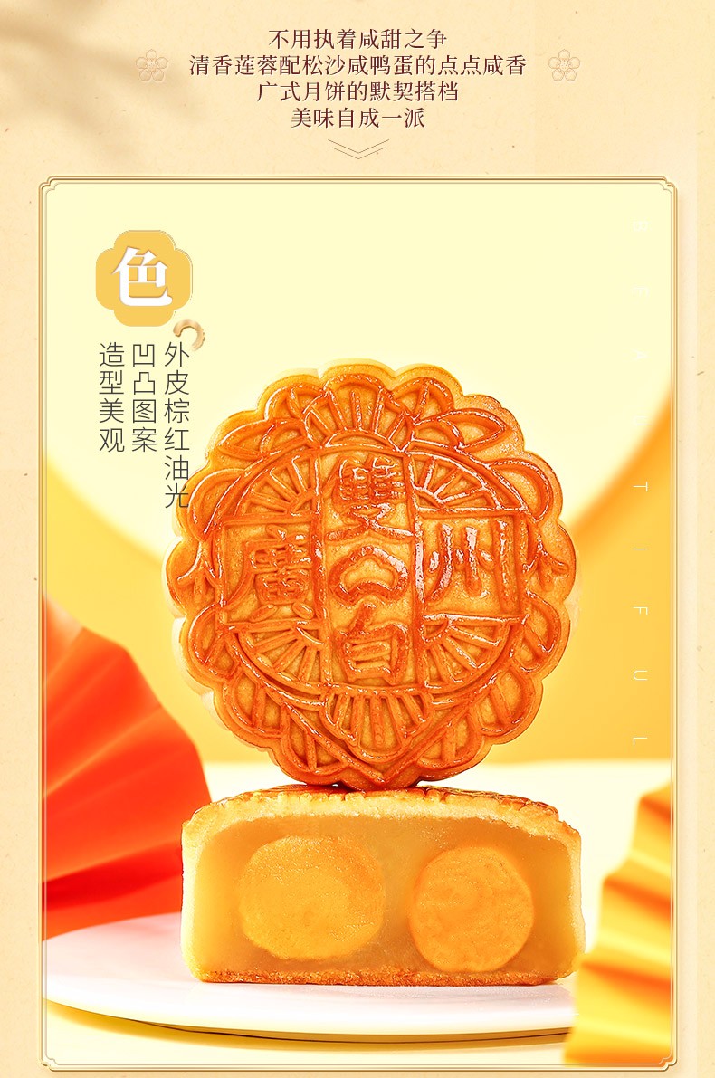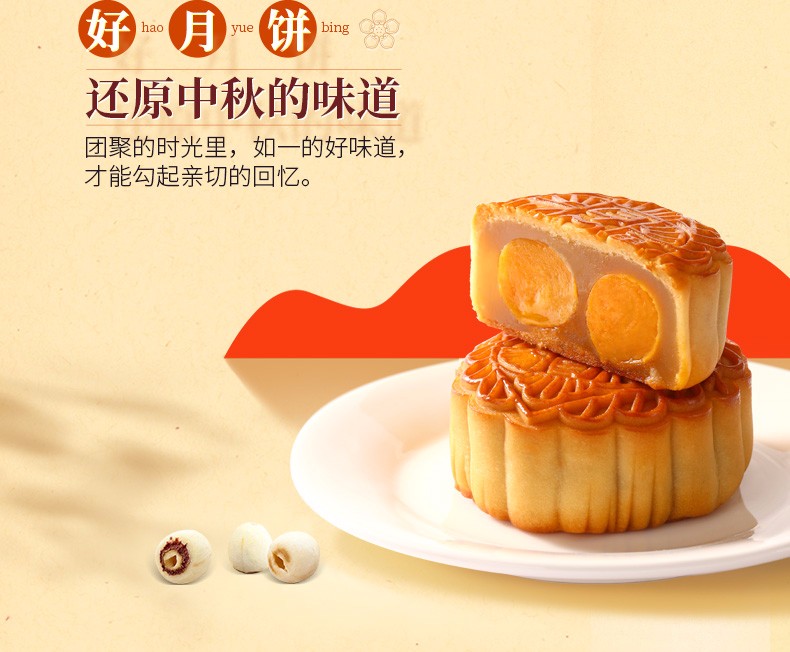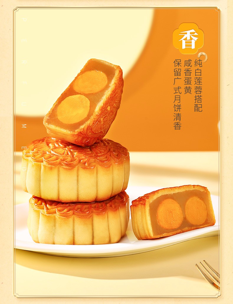 广州酒家月饼双黄纯白莲蓉月饼 广式月饼广东特产750g/盒中秋送礼员工团购福利