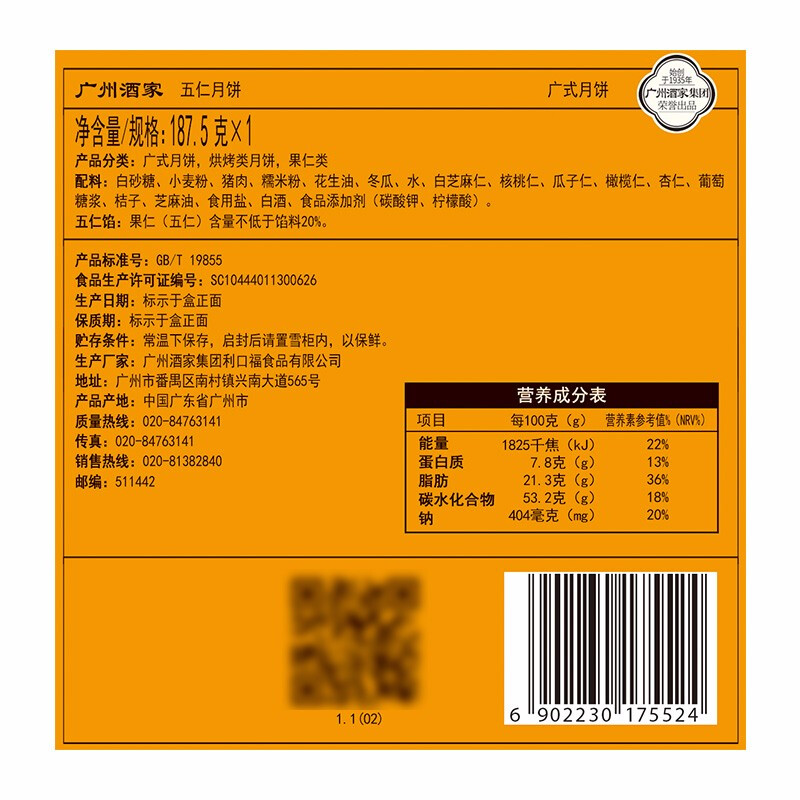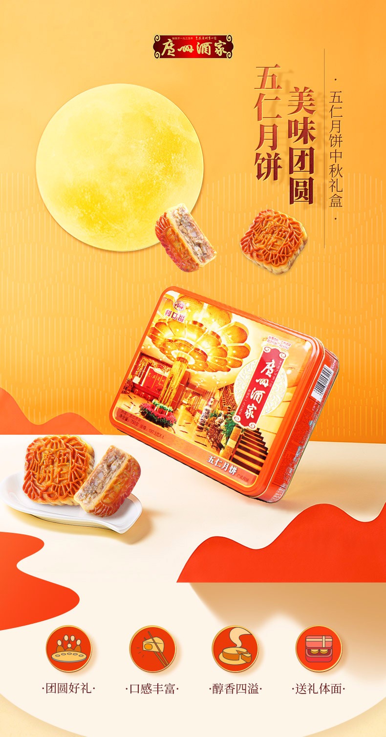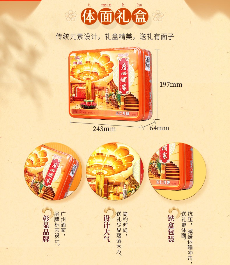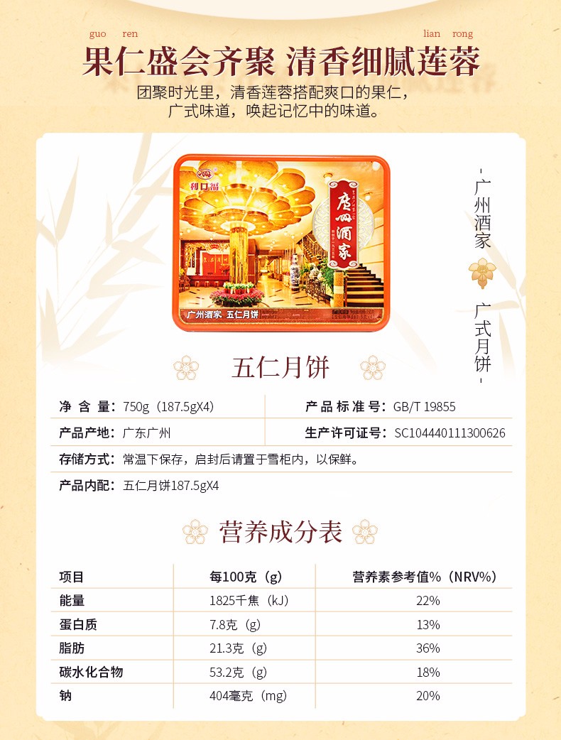 广州酒家 五仁月饼750g 中秋月饼礼盒送礼利口福手信员工福利团购礼盒