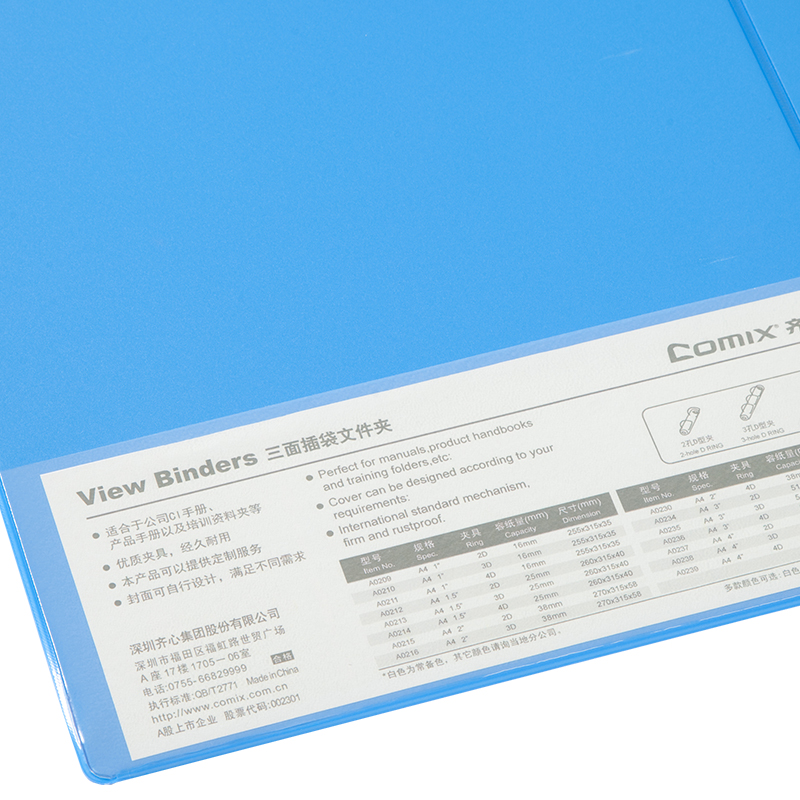 齐心 A0216 易展示 美式三面插袋文件夹 A4 2寸3孔D型夹