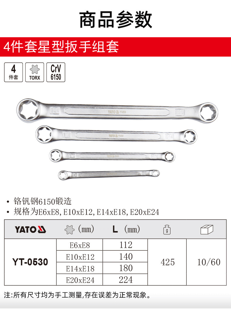 易尔拓 YATO 星型扳手组套4件套双头扳手YT-0530