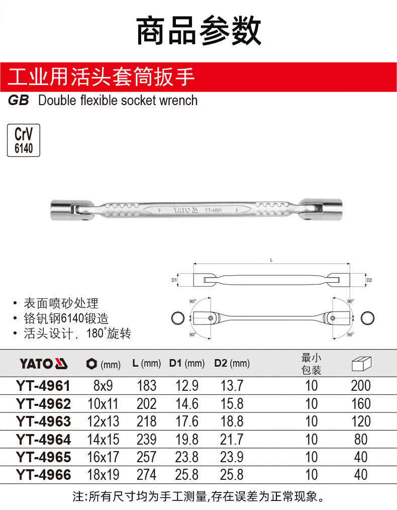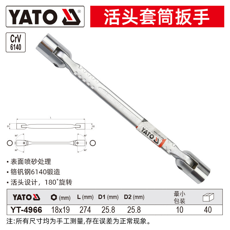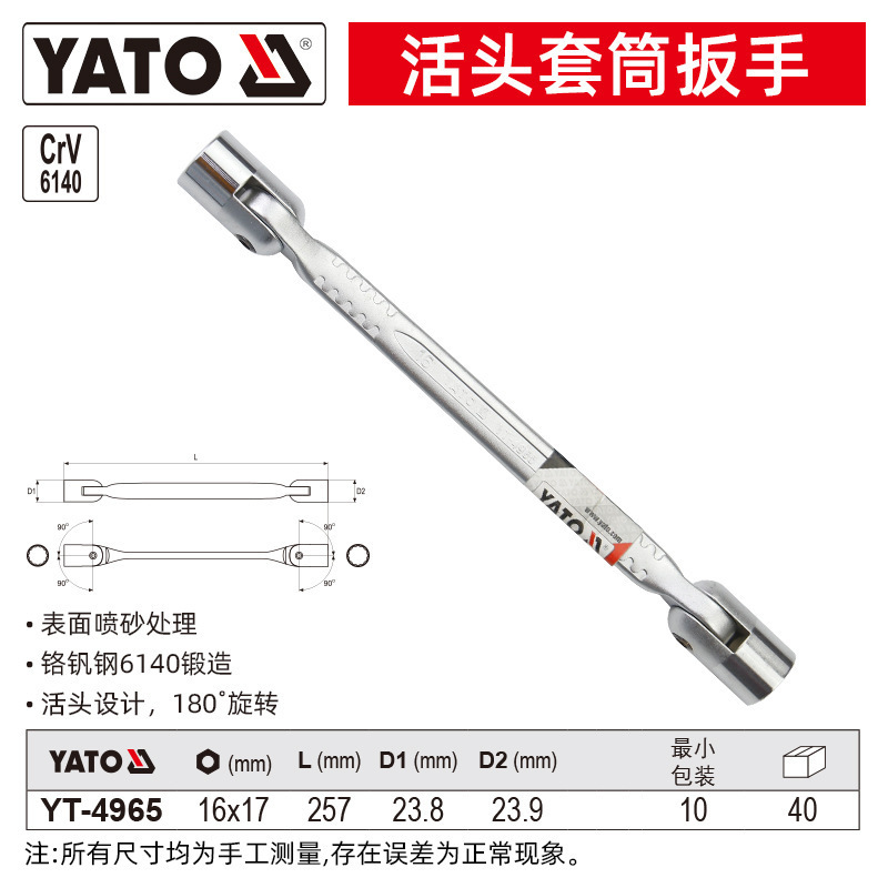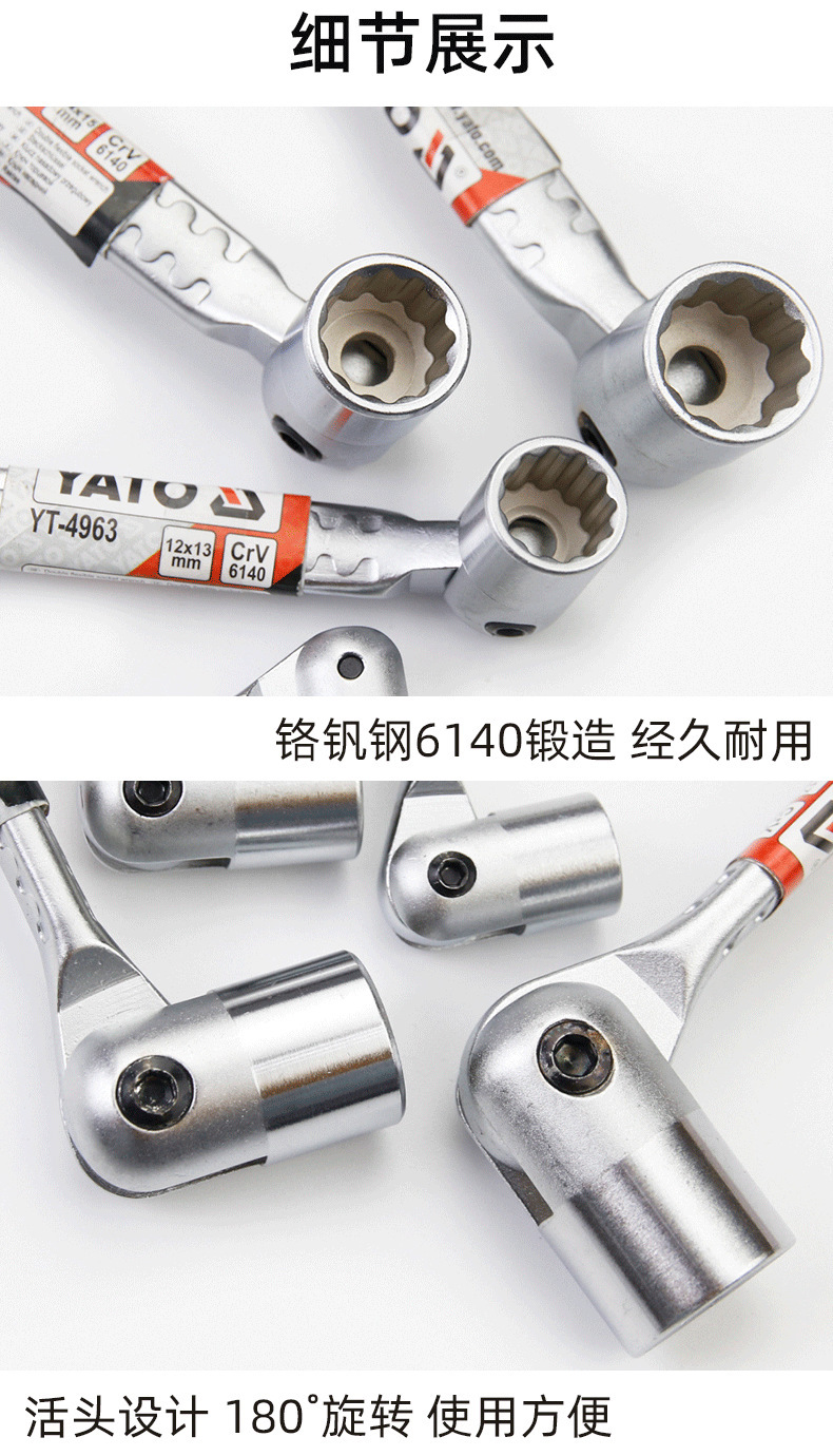易尔拓(YATO)活头套筒扳手12角花型活动旋转头套管扳手