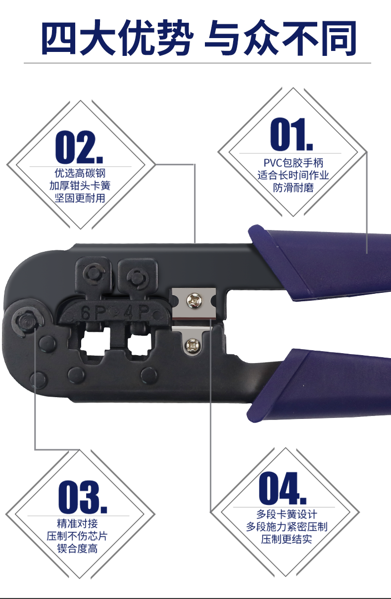长城网线钳压线钳 电话网络端子压接钳(210078)