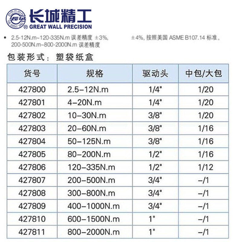 长城精工扭力扳手 扭矩扳手 GWN-1定值式套筒扳手 10-30N.M 427802