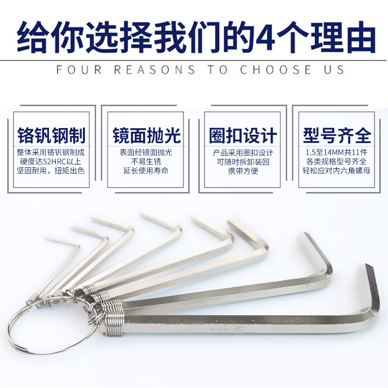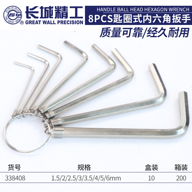 长城精工内六角 内六方扳手工具套装钥匙圈家用六楞螺丝刀 1.5-6mm 338408