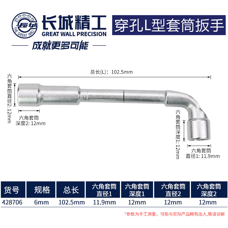 长城精工L型套筒扳手汽车摩托车换机油板手6mm428706