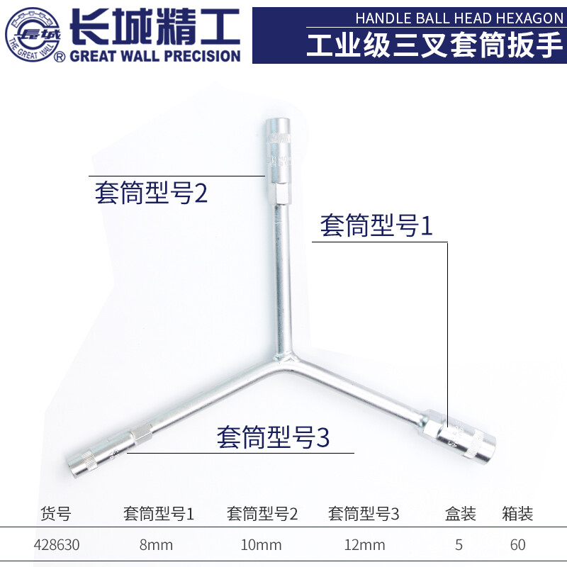 长城精工三叉套筒扳手Y型套头套管板手汽修工具 8-10-12mm 428630