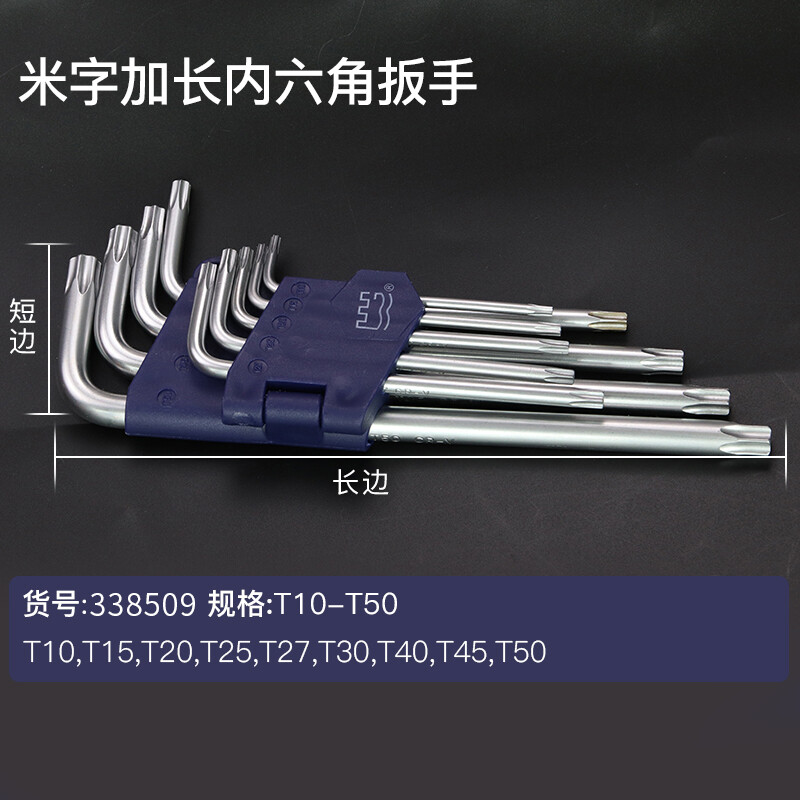 长城精工内六花扳手工具套装 花型内六方扳手 硬度高 加长9件套 338509