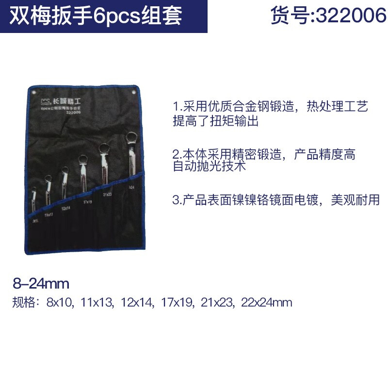 长城精工双梅扳手组套梅花扳手工具套装工业级8-24mm6件套322006
