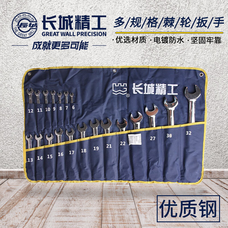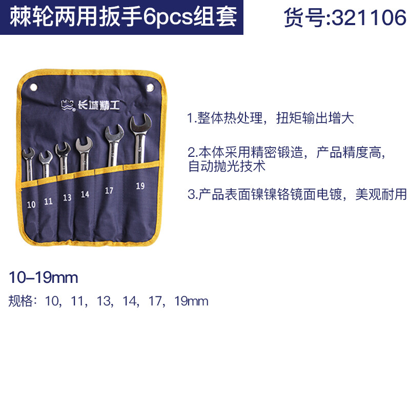 长城精工棘轮两用扳手组套开口梅花棘轮头扳手套装快速扳手10-19mm6件321106