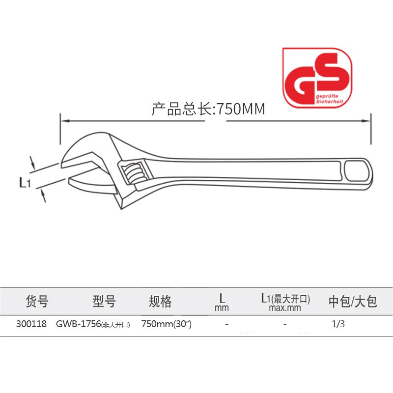 长城精工活动扳手 活口板手 工业级活扳手带刻度 750mm 30英寸 300118