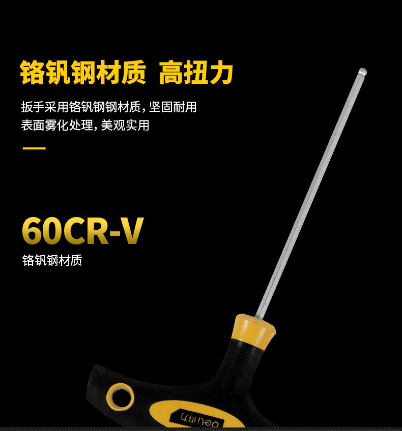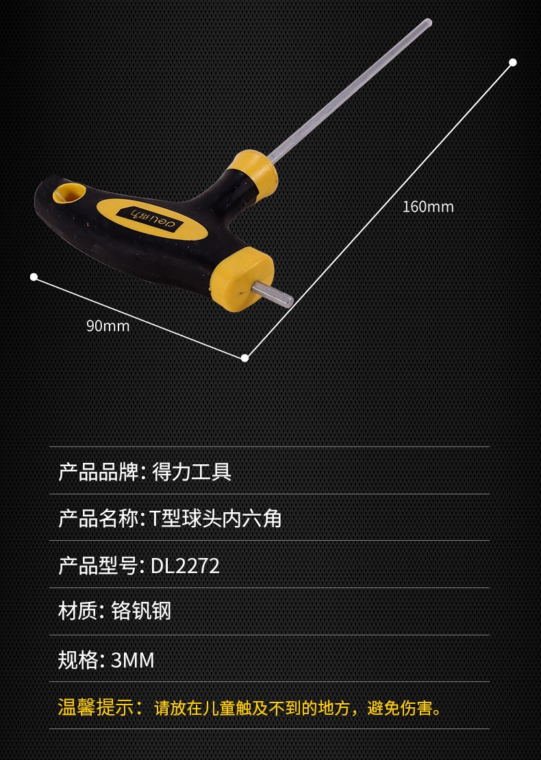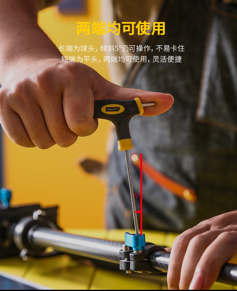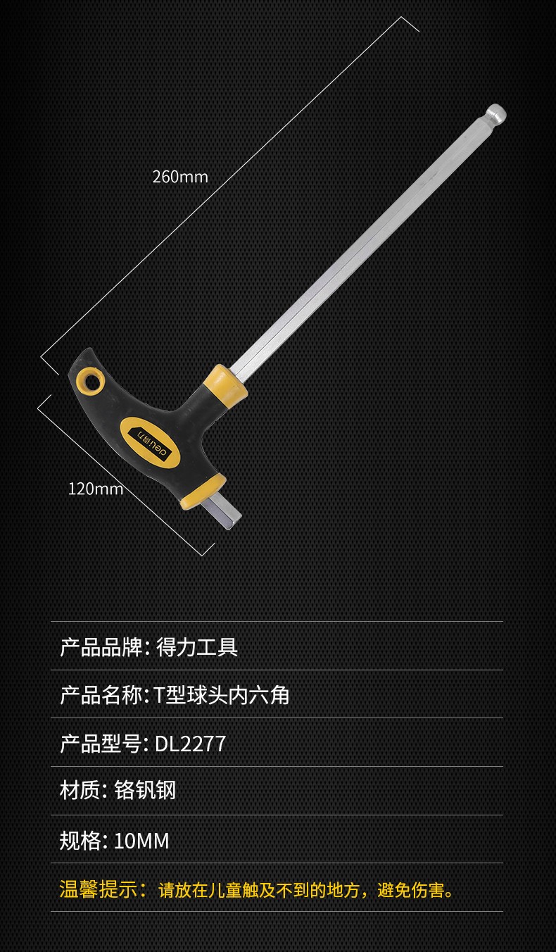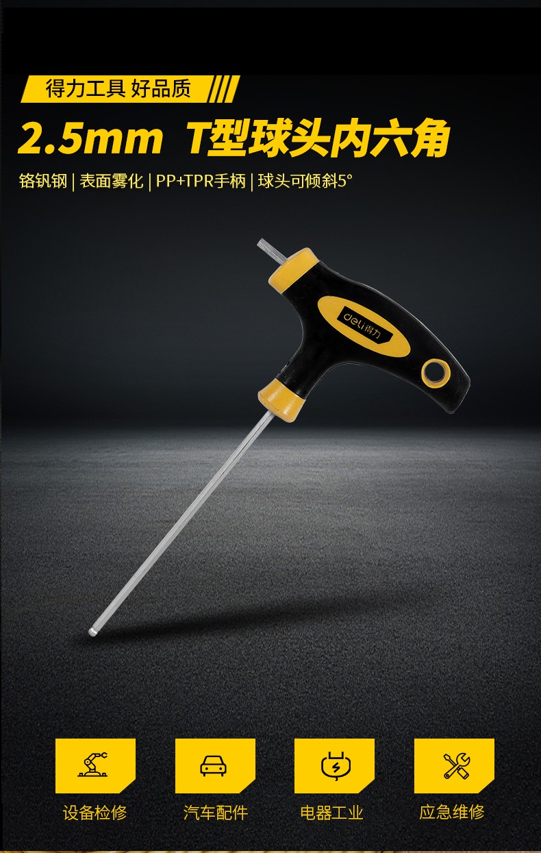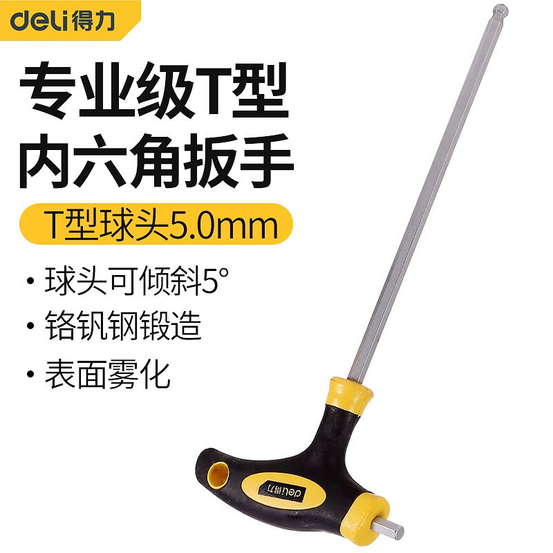 得力(deli)内六角扳手T型单个2-5-10mm螺丝刀球头平头内六方六棱角扳手 60Cr-VT型球 [5mm ] DL2274