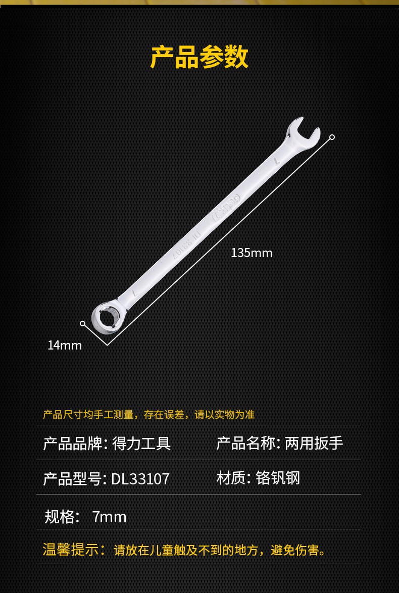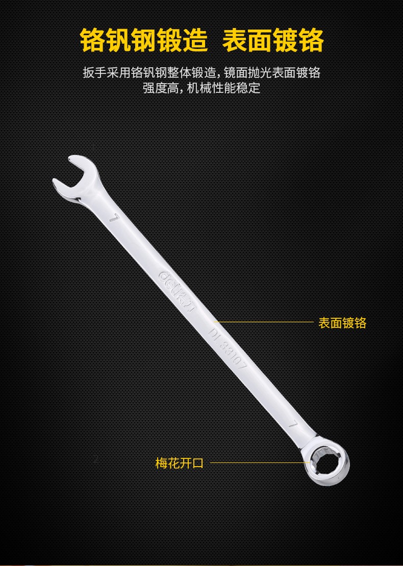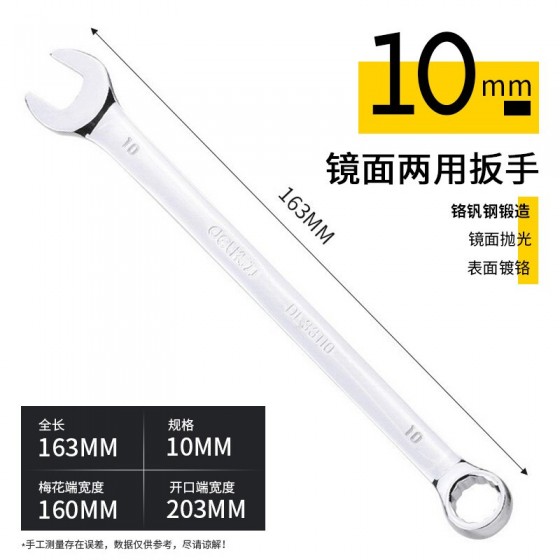 得力(deli)镜面两用扳手梅花开口板手镜面抛光梅开呆扳手五金汽修维修工具 DL33110镜面两用扳手10mm