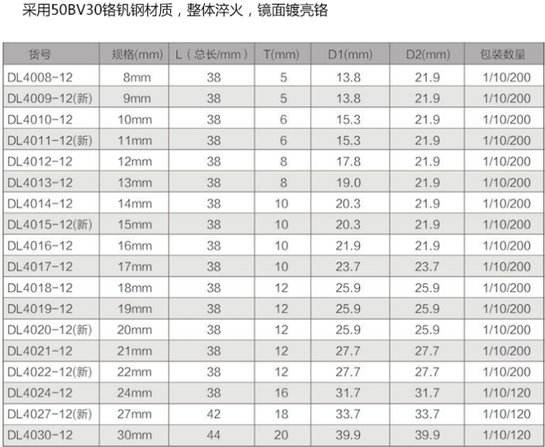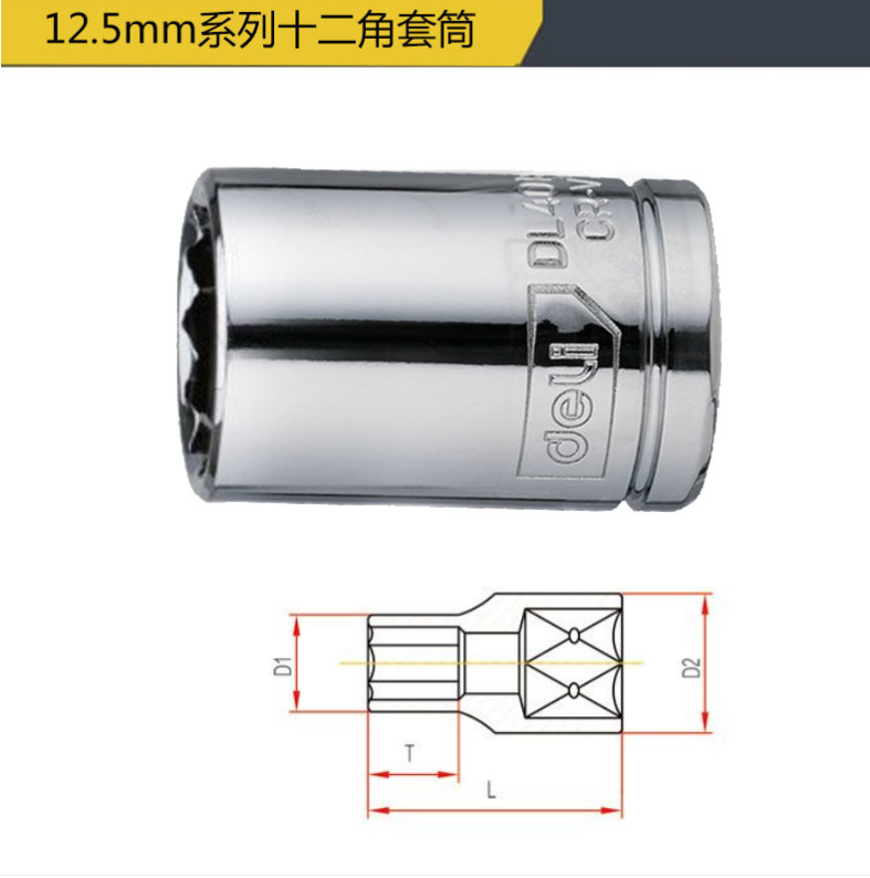得力 deli 12.5mm系列铬钒钢材质 十二角套筒 DL4030-12