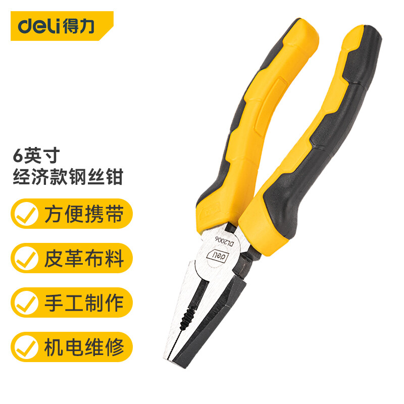 得力(deli) 双色胶柄钢丝钳老虎钳6英寸 DL2006