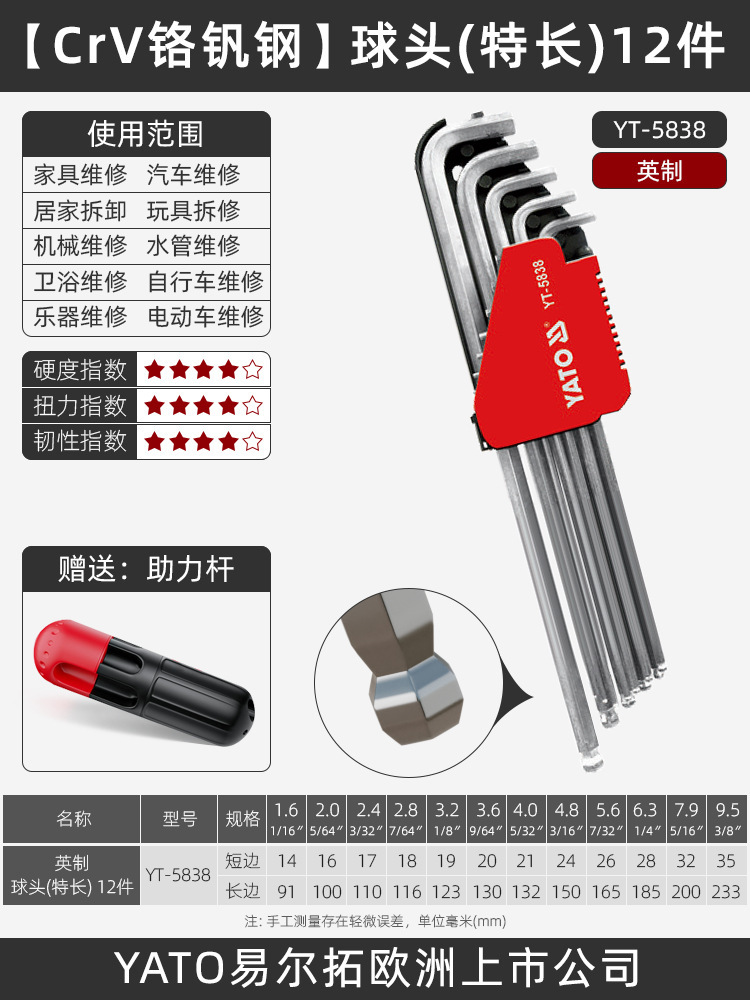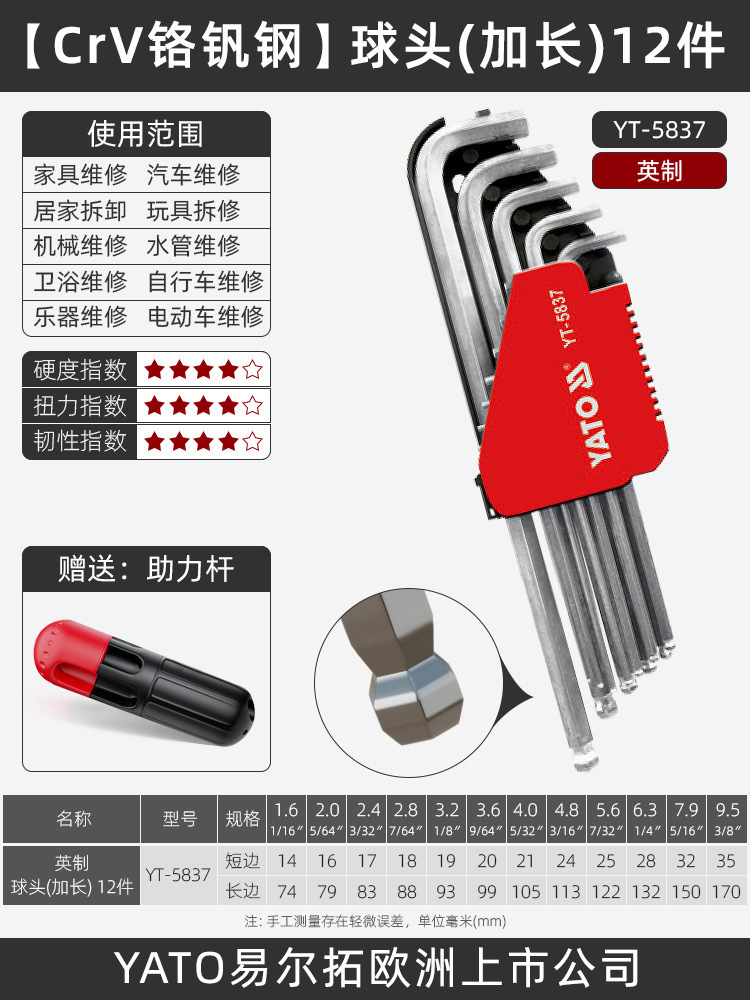 易尔拓内六角扳手套装螺丝刀梅花内六棱工具内六方六边形