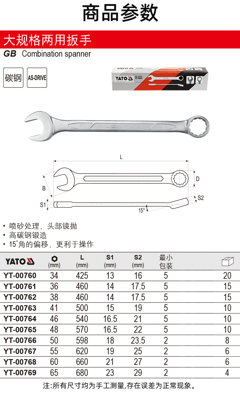 易尔拓两用扳手大规格34-65mm梅花开口梅开呆扳手汽修工具