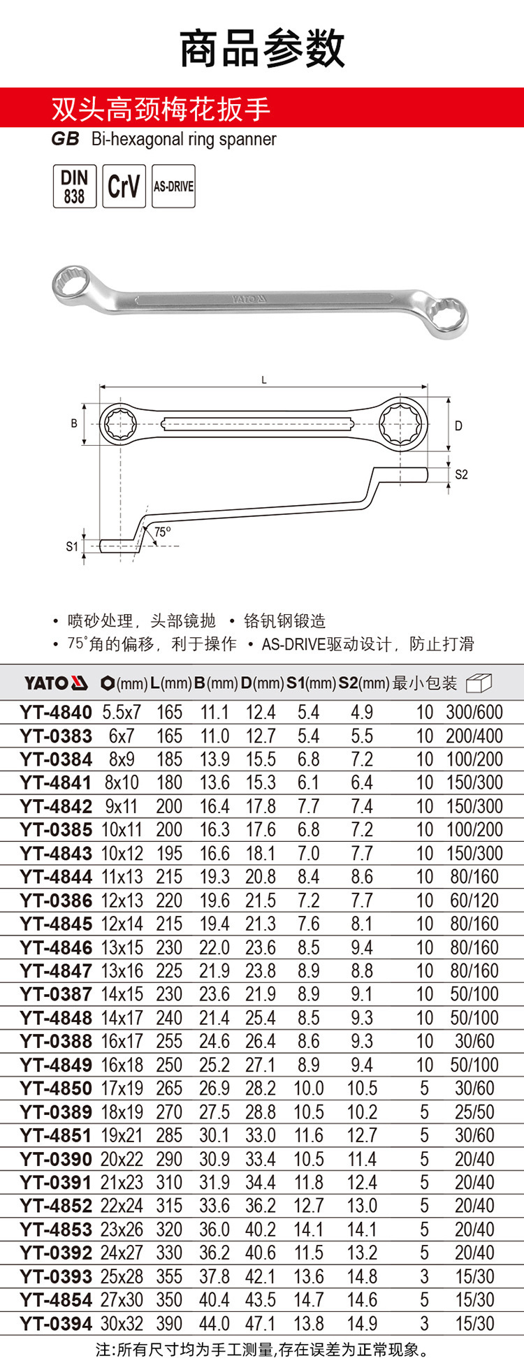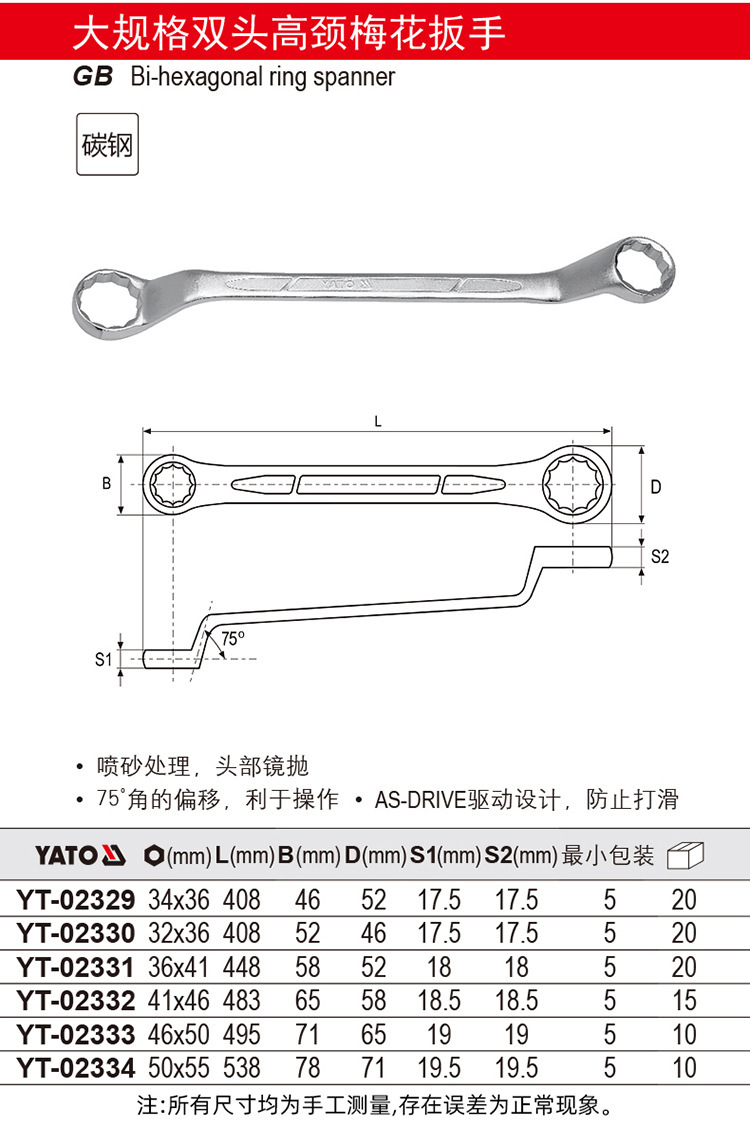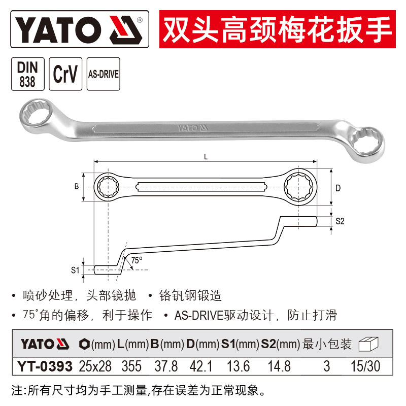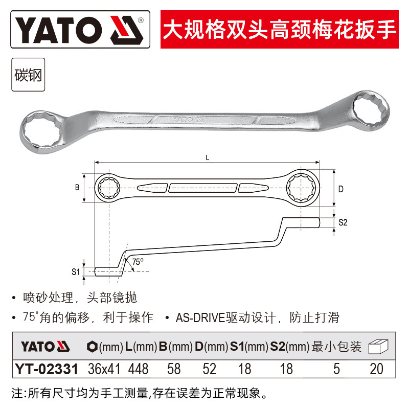 YATO Двухголовый высокошейный гаечный ключ