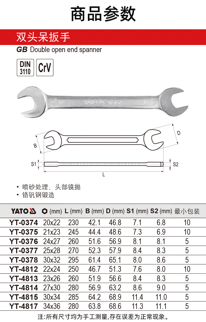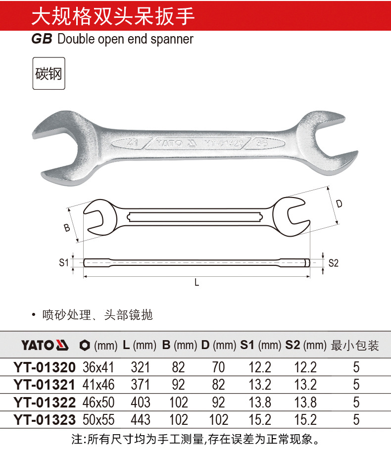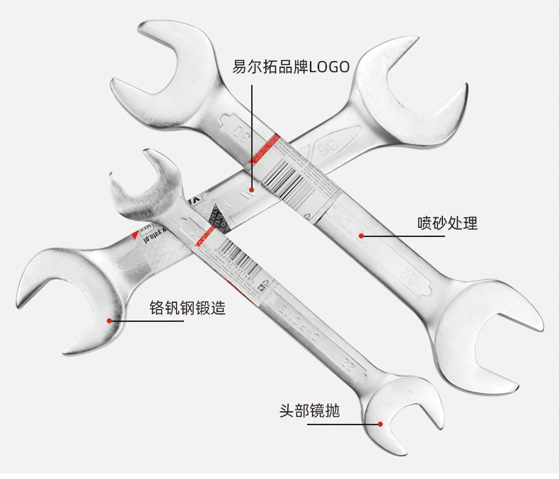 易尔拓开口双头呆扳手20-55mm两用汽修扳手工具死口叉口固定板子