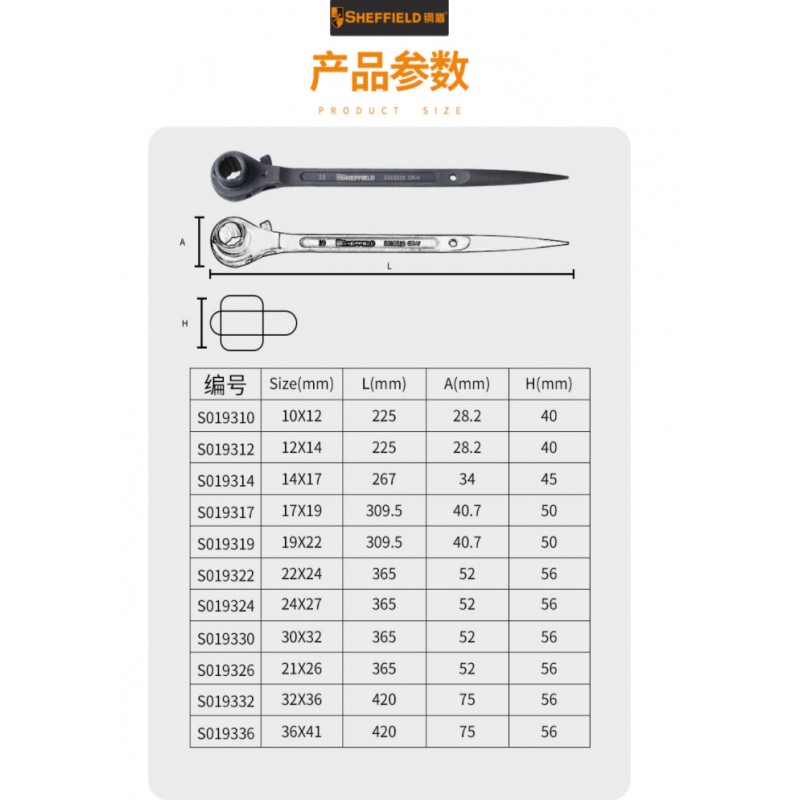 钢盾 S019312 公制双口尖尾棘轮扳手12x14mm