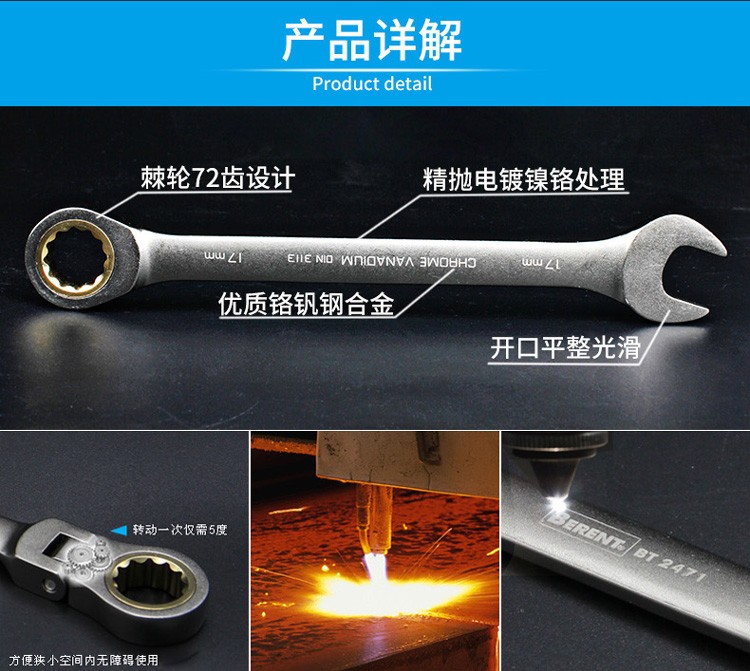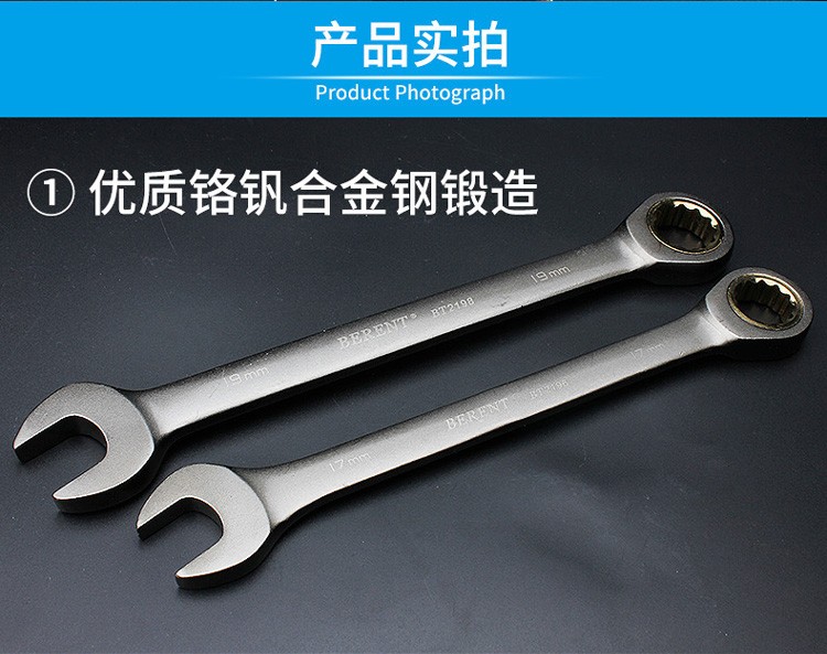 百锐 BERENT 开口扳手两用棘轮扳手梅花扳手汽修呆板手五金工具维修手动工具 BT2188 9MM精品棘轮两用扳手