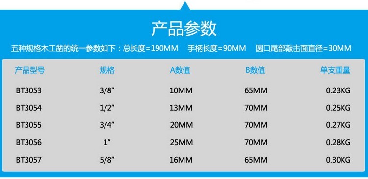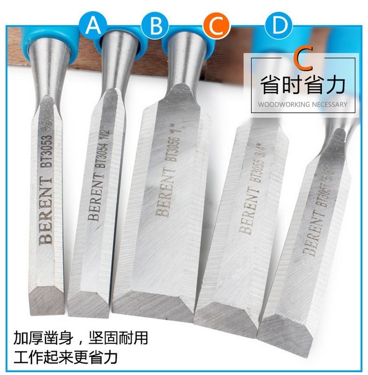 百锐 BERENT 钊木工工具套装 BT3053 蓝圆柄木工凿3/8