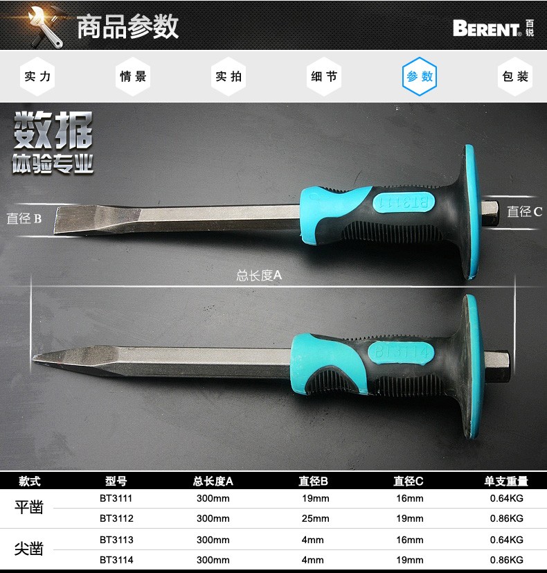 百锐 BERENT 19*16*300mm平口凿子 BT3111